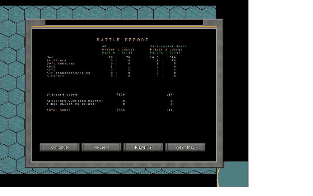 Lt. Col. Sparks is pleased to report that the Ibiza airfield was captured in 41 turns along with the Spanish Commander. Losses were 78 men and one landing barge. No squads were lost entirely.