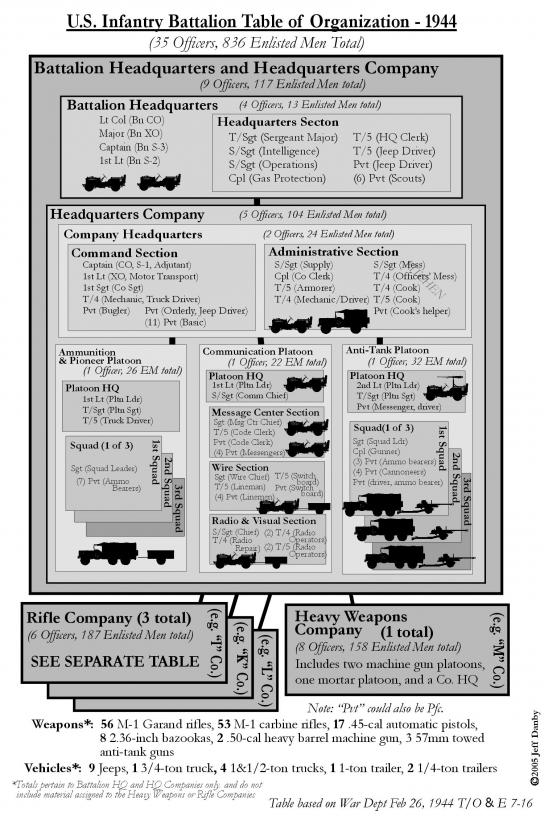 I have this game and have a VERY LONG USA generated Campaign ongoing from North Africa to the end of the war maxed out at 99 battles. Also I've read as much as I can on the war to include the prize of my collection Churchill's 1st Ed. (U.S.) complete set of "The Second World War". Currently reading "The Day Of The Panzer" by Jeff Danby dealing primarily with the U.S. invasion of Southern France. I have sent this on earlier in the week copied from the book so not very readable along with the refs from the military history section in Wash. D.C. they matched up to within 10 men at the Battalion level. For the TD TO&E it could've included the M18 or M36 depending on unit and time frame. These tables reflect what the units used in S. France which is why you'll see the M10. Note the units noted below were also supported by a platoon of M8 SPA as well though not shown in the charts.