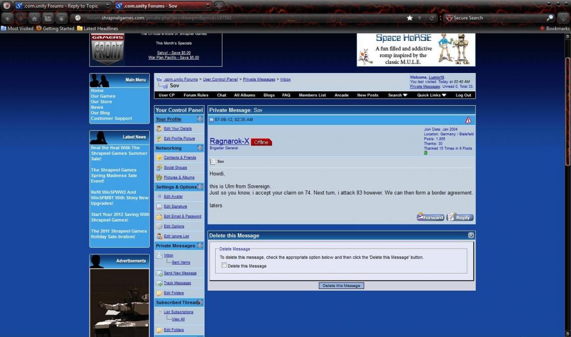The only message I got regarding the provinces between the mountains was this one through private messaging. I thought the message said we would form a border agreement in the future but there was no further communication between us. Regardless I'm withdrawing my forces and if I misinterpreted your message I apologize for this serious breach of the contract that was formed.