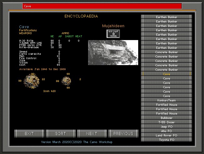 Does anyone have any good tips for simulating cave and tunnel entrances? I'm trying to make some Okinawa/Iwo/Saipan maps. In the past I've used a lower elevation with a fortification in it, like maybe having an elv=3 and using the edge with an lv=2 for the fortifiction This protects the lower elevation from less than direct hits by arty but greatly restricts the ability for weapons use within and by the fortification. I'm not asking for a new icon, just a work-around. Cave and tunnel entrances should be more resistant.