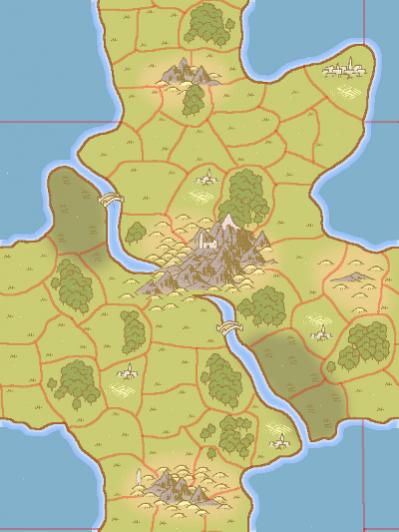 After that we'll just color the land masses with the lightest green you can see on my maps and the seas with the lightest blue you can see on my maps (the one closest to land). After that make a new layer named graphics. For graphics you can scavenge pretty much anything. I generally just scavenge my old maps.
