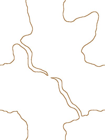 If you're drawing sea areas that end at the edges of the map, you'll have to ensure they wrap around properly by continuing on the exact other side of the map. I won't even give you a picture about this, as it's pretty simple. When your beachline ends at the top of the image, you'll continue at the same x cordinate at the bottom of the image and vice versa. When your beachline ends at the left side of the image, you'll continue at the same y cordinate at the right side of your image and vice versa. This is also the cheap and quick method for drawing province borders around your wrap later. I'll give you a picture showing how a big lake in the middle (rather unoriginal choice, by the way) looks like below. Before that I'll have to draw rest of my land mass though, as I didn't finish the rivers yet. The idea of rivers is, that you'll hide the points where rivers start behind some mountains to look like they're coming down from them or from inside them or something.