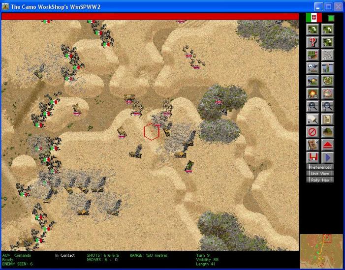 In the north central section of my line, a couple of platoons of armored cars are moving up to my line with one Dingo in the lead. The Dingo and another armored car have been destroyed.