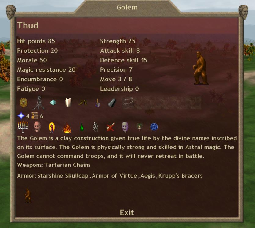 Interesting what you say about the tartarian chains. I will after think about that. Besides equipping him with it to enslave enemy armies troops, I was also hoping to get 'free' ashen angels with no real danger to my golem. They attack to get the chains, I enslave them. Only had him 4 turns or so now, so still early days to see if this is possible.