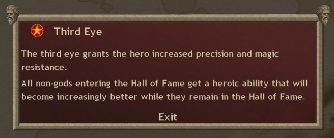 It is funny. But the third eye is more psychic or spiritual than literal. If his fame continues, he'll get higher and higher precision and magic resistance.