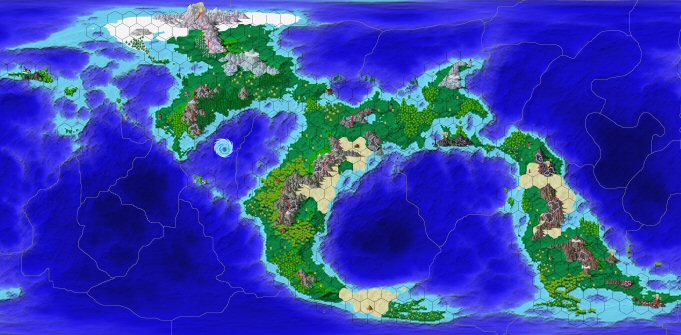 I have so many hex's because with the land area so narrow, I was afraid of too many bottlenecks. I admit I did not think much about sailing. As for amphibian's the Sea areas are limited to the ancor land sites. Ich I will connect 1 and 321, I set the default zoom high to help fit in the hex's however, I am open to suggestions as to the prefered level on the default zoom. Honeybadger Thanks, I like a global style map.