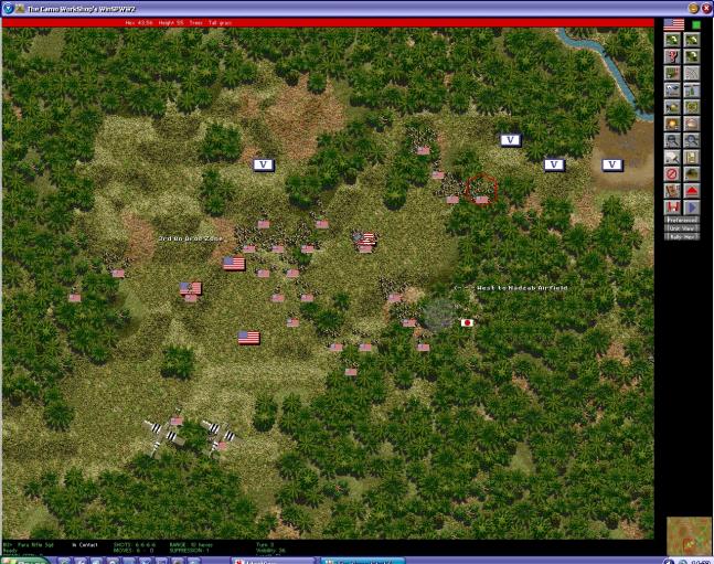 Back on land so had a quick go at, as you are new to the game screen shot of turn 3 situation. I droped in direction the 2 gliders are facing as in from the South West. Bought Howitzer Jeep glider section for arty support & as Gila said looking at the distance to far flags would not make it in time, plus 12 aircraft. Landed with no resistance & quickly killed all but one Jap LMG squad by the end decisive victory. Key to Paras is land in open terrain never woods rough slopes etc as you will get landing injuries, I had 2 units drift off & lost 2 men on landing because of it. The other thing is till you get Paras organised which you never really get time for use smoke they have lots. If shot at dont fire back smoke & move people up so outnumber next turn unless you can already engage with multiple units. Use your Baz teams to go for the flags tanks are unlikely so the rest can do the fighting. Without the jeep would not have got flags furthest East but would still have been a victory score was 285-21 would have got 50 or 60 less is all.