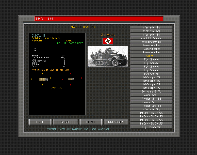 Here is a screenshot of the SdKfz 11 - Icon 1169. Note the picture.
