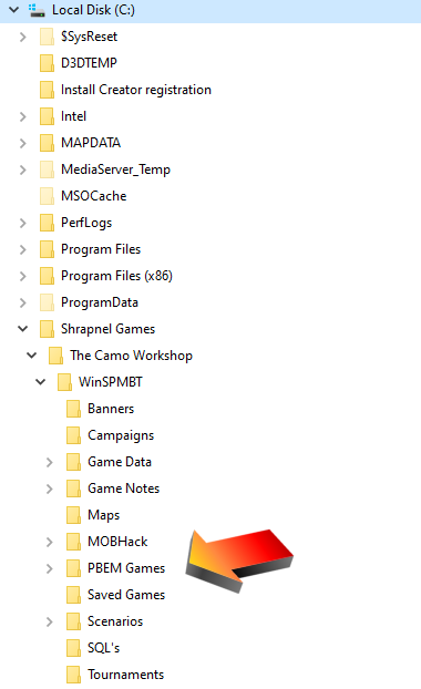 Here's what I see when I open the SPMBT Folder in the C drive: can't find Saves nor PBEMs, even though I created a dummy PBEM game to see if it created a sub-folder.