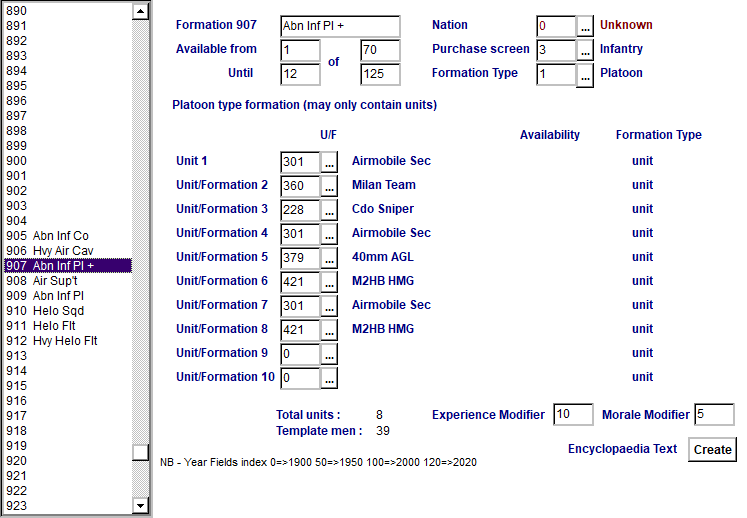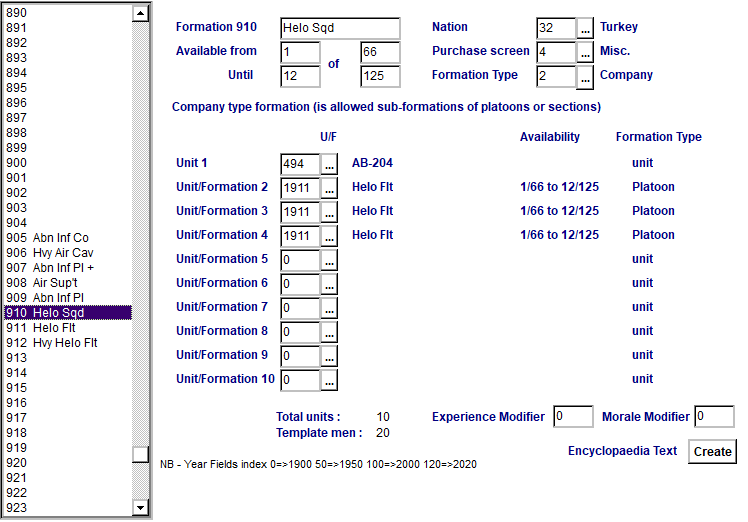 I organized the helicopters into two squadrons of 10: a, lead helo and three flights of three helos. The Hvy Helos are just 2 Helos from the OOB, so as to carry the light trucks as sling loads.