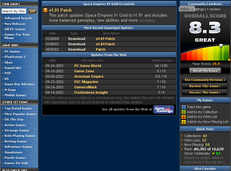 They have Space Empires IV, which they reviewed with a marginal acceptance, and then they have Space Empires IV Gold which they have not reviewed.
