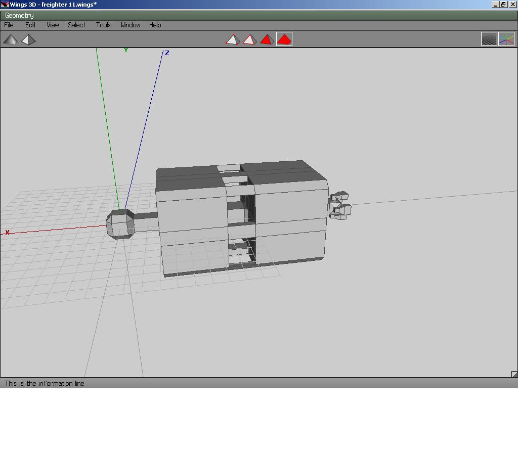 Here's a screenshot of one frieghter I was working on..this is the "empty" configuration. You can't see it from here, but those big protusions on the sides have nothing in them. The idea being that it can carry up to 8 strap on cargo pods, and the outer ring acts as armor/helps keeps the pods in place.