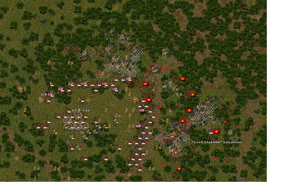 1335: C/1/7 arrives and moves to south of LZ and attacks PAVN in flank. HQ moves to middle north of LZ.