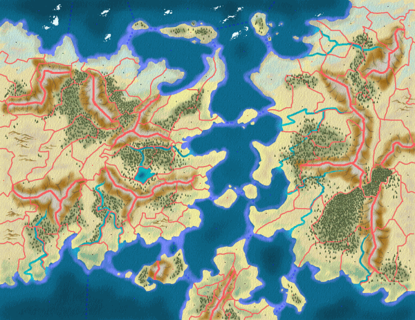 I notice, though, that there are lots of mixed-terrain provinces again. After a whole lot of blitz games I have come to the conclusion that those aren't really good: While you only need 1 survival skill to get full movement through a 2-terrain province (eg. mountain forrest), there's always 1 unit in an army which will bog the whole bunch down to 1 prov/turn. And that's not only too slow especially on such a big map, but gives big advantages to flying units as well.