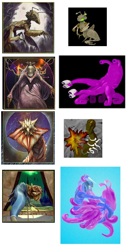 I especially like their versions of the races I was never able to draw very well for myself (the Norak, for instance). However, I still prefer my squiddie Cuecappa, blue merman-sergetti and curvier, less-praying-mantis Xi-Chung to the se5 versions. Their Ukratal wins over mine though, definitely.