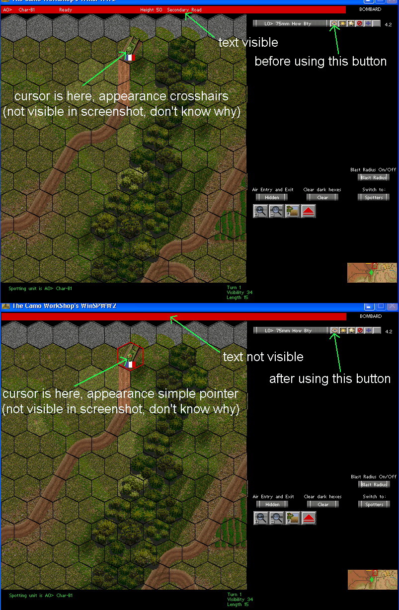 In the bombardment screen the top line that shows information like unit name, status, hex coordinates, etc. stays empty after accessing the gun data screen via the "eye" button.