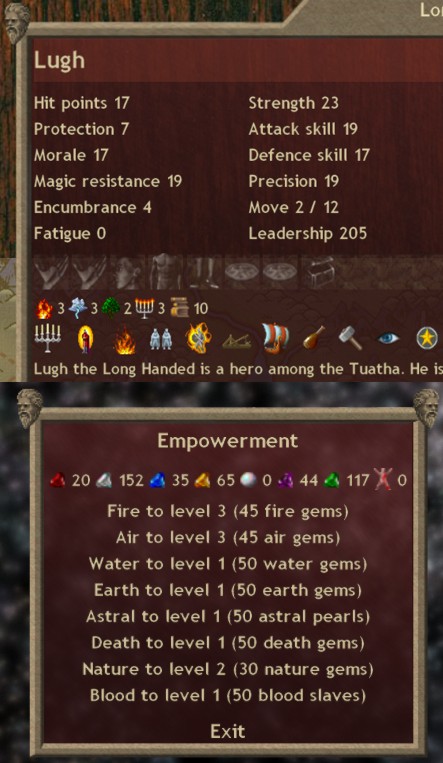 When empowering Lugh the Longhanded (U1805), you see his magic levels as one level too low. "Empower to Air 3" when he already has A3 (see attachement).