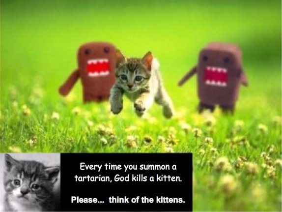 I tried to use lolinator, but I couldn't get anything fitting. It's supposed to read sites and select (random?) text, and add it to cat pictures. Unfortunately, I couldn't get a kitten with LORD OF CIVILIZATION or a biker-cat with something to do with insanity, moose or both. The dumb script started reading these forums from the Weird World ads to the left, and never got to the forum part... and Dominions reviews didn't work either.