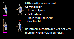 Well, yeah, that's pretty much it. Here's the quick sprite I spoke about. Ulthuan spear is supposed to be a slightly improved spear. I'd imagine stats for the spearmen to be regular human stats apart from: