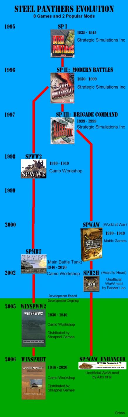 SP2WW2 was the original MOD with work begining January 1998 and first release Dec 1998, then came SPWW2 then the other game , then came SPMBT then came the windows version of SPWW2 and SPMBT.