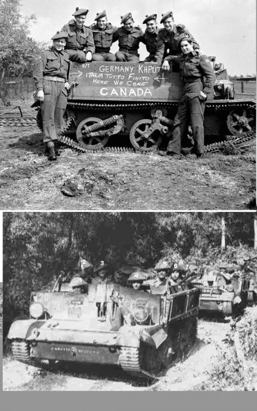 Pictures with more than 4 men in a universal carrier are showing the vehicle used as a transport, clearly they did not go into battle like this as it would be suicide.