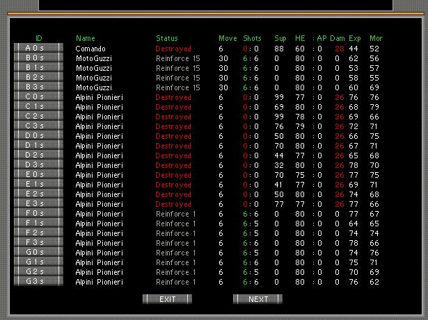 He's a pic of the enemy roster along with end of scenario save. As you can see many units simply did not appear.
