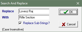 Each name is of course a string, so to replace all "Squad" with "Section" - check the sub-string checkbox since in "Rifle Squad" Squad is but a portion of the name string.