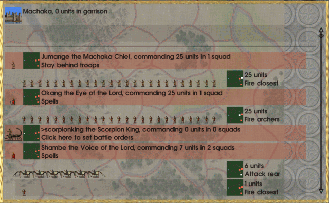 Choosing Machaka had the added advantage, that I don't have a clue how to play them, so pretending to be a dumb AI that follows it's script wasn't all that hard. (Learned something about Machaka in the process, I hope)