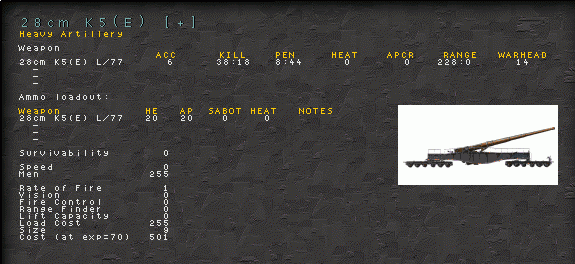 "280mm K5(E) L / 77" have "31cm Sprgr. 4861 ( Armor Piercing Discarding Sabot )" and "28cm Gr. 35 ( High Explosive )".