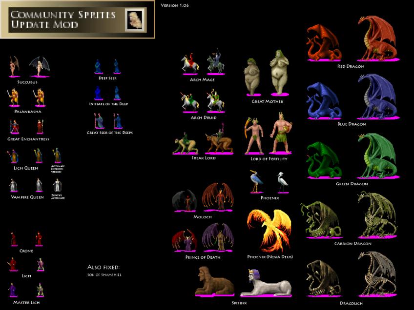 This is an ongoing mod aimed at being a community project that provides improved artwork (or quality alternates) for units whose sprites are showing their age in comparison with KO's and Illwinter's more recent standards.
