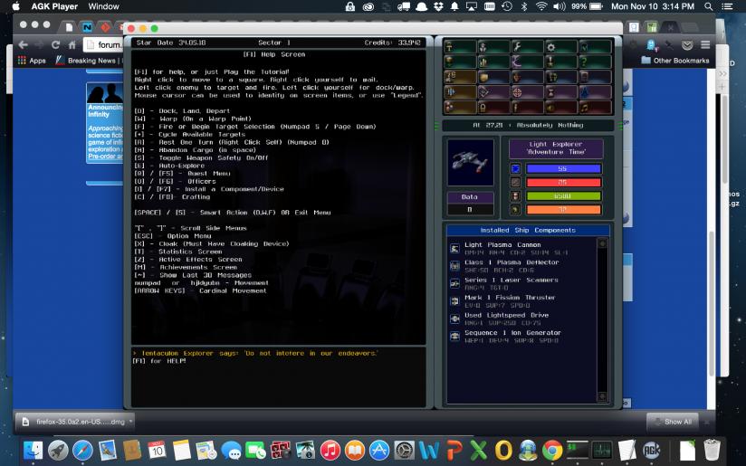 I noticed on the screen shot you posted that the window for Approaching infinity is like 1716x1288 in size. I'll poke Bob about the strange size, the game was designed for 1024x768 desktop window. I am confused as to why the mac is scaling it up so much.