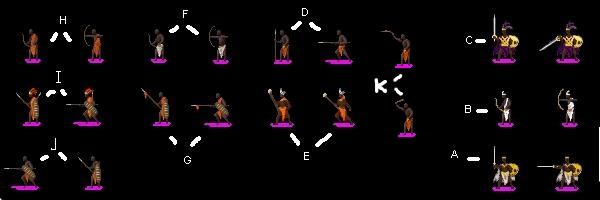 D = Lion Cubs, poor guys, just a orange-y toga recolour for you, oh well, you'll die in thousands.
