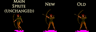 I realized that the attack sprite had some uglies about it. I've edited it a bit, hopefully an improvement (mostly on the legs, bow, and her right breast). Getting a tiny bit better at my image-ripping sprite fu.