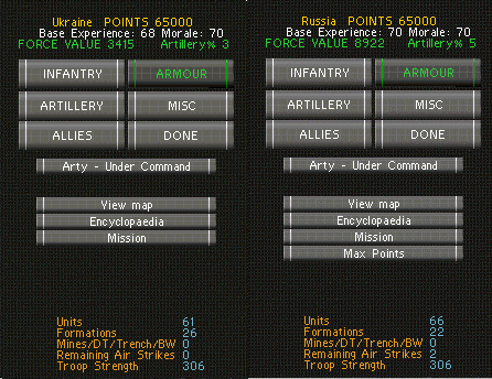For more of a challenge, I suggest that you play the Ukrainian side, although the scenario has been play-tested and is winnable as either side, with the caveat that a "Draw" based on points score should be counted as a "Marginal Victory" for the Ukrainians.