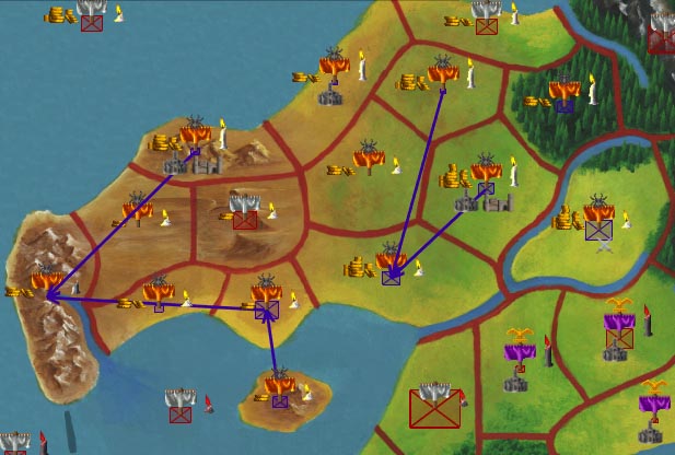 Scouts, in the meantime, report that Ulm controls only two more provinces beyond its capital, and that beyond those provinces lies the Jotun capital. Jotunheim and Abyssia appear to share the bulk of the southern portion of the continent. But where is Tien Chi? The mysterious Easterners have yet to put in an appearance.
