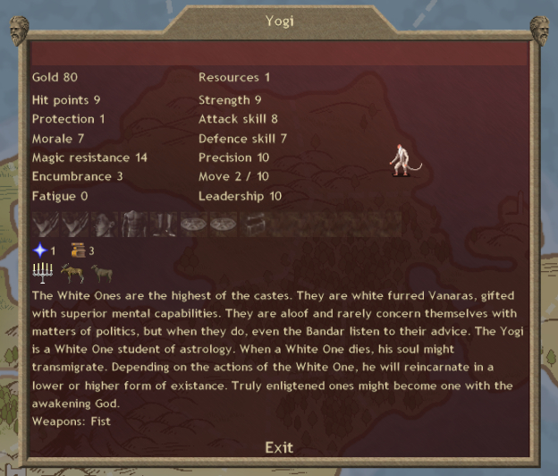 An arena death match has just been announced. I have the opportunity to send one champion to vie for the prize. After much deliberation I have decided to send a recently recruited Yaksha by the name of Carusara. Carusara is a gifted individual, but unfortunately the yogis haven't yet come up with too many useful duel-like spells. I guess he'll have to make do.