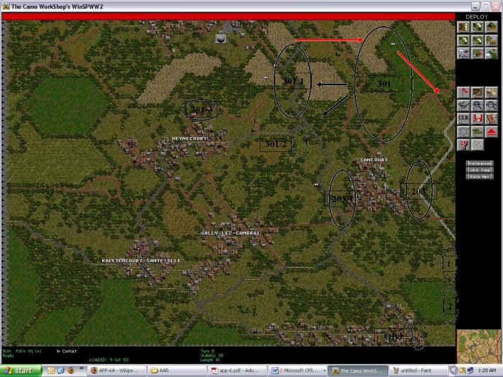 In the southern end of the map I also expected an enemy recon force, but not in strength. My intel was wrong here to. More to follow.
