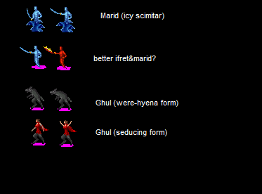 - Ifrit and marid now have scimitar and shield instead of the magic weapons
