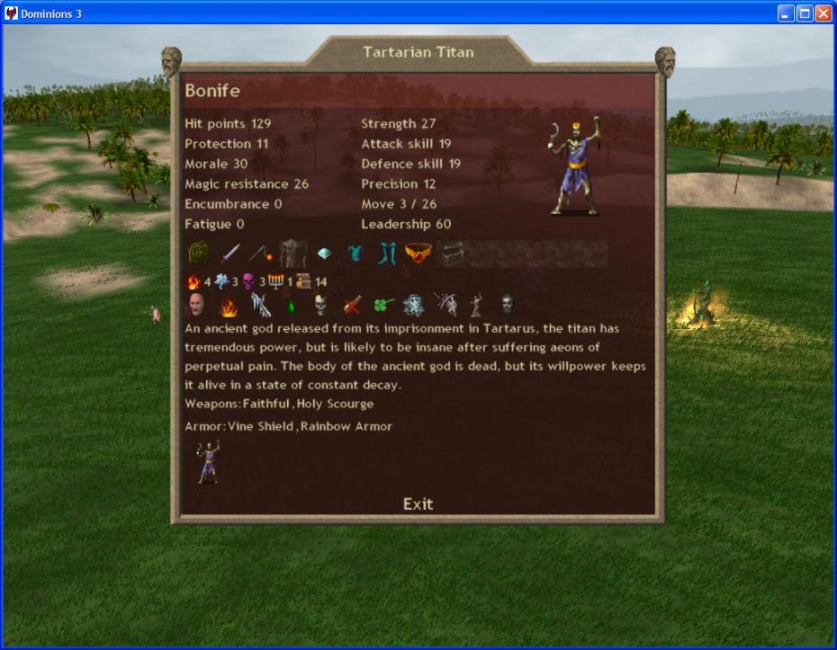 Screenshot was taken after the titan, previously a dead rudra, buffed with Iron Will