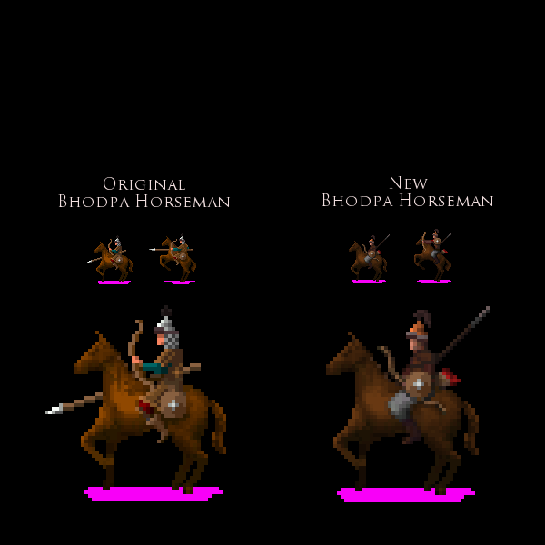 Updated. Most sprite tweaks are very minor -- cleaning up shading gaffes and a stray pixel here and there --, though two have been completely replaced: the Bhodpa Yak Rider (per my last post) and the Bhodpa Horseman (for similar reasons regarding the rider).