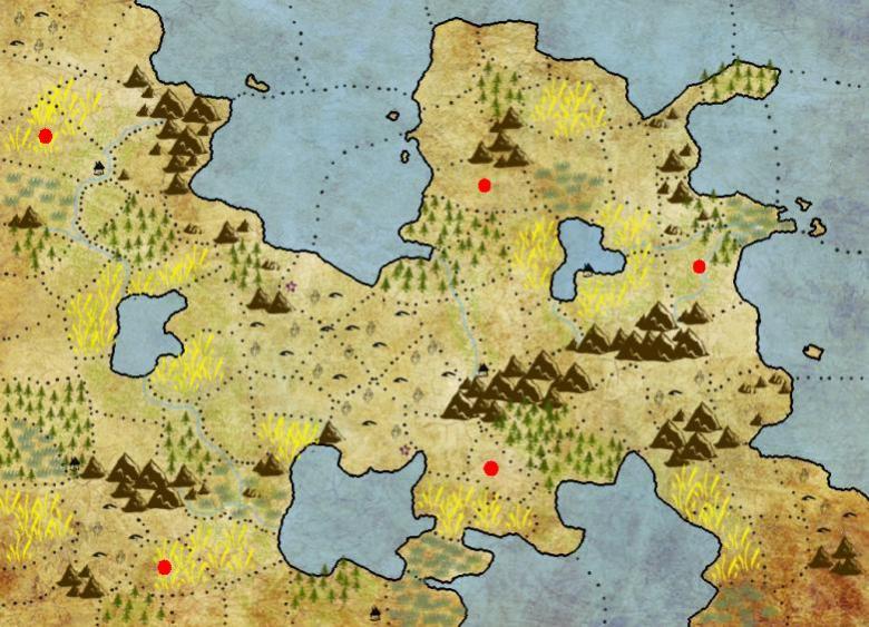 Assuming we don't get another player soon, what does everyone think about these start locations? Not perfectly balanced of course, but I tried to avoid putting someone directly in the center of the map.