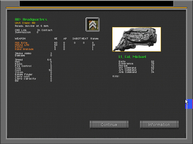 However the Unit_Information_Screen, the Headquarters_Menu, Scenario_List and all opening screens alike, are very hard to read because the spacing is quite narrow and there is a large amount of text.
