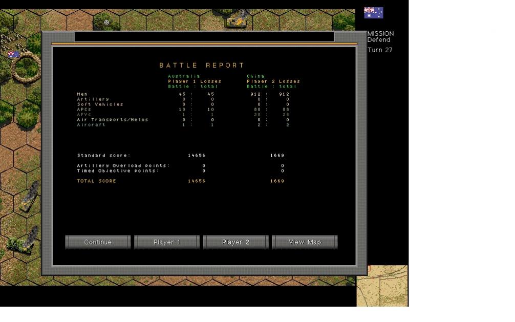 Also, I understand the issue of battle points raised by Shahadi. Originally, I set this as an advance against the Australian units. But the play balance from vehicle types showed a severe disadvantage to the Australians in unprepared positions. I may go back to that once I test the updated version with adjusted opportunity fire.