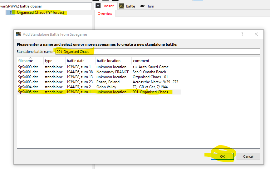 Hi Then I go in the tab "Game" and click on "Add Standalone Battle From Savegame". I found my saved scenario and write the name, then click on the name in the list, then "ok" and ... a few seconds later, Warcab shutdown and disappear.