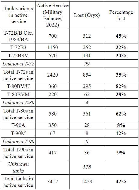 So pre-war that makes 825 T-64, 10 T-84, 246 T-72s and 62 T-80 (1.143 total).