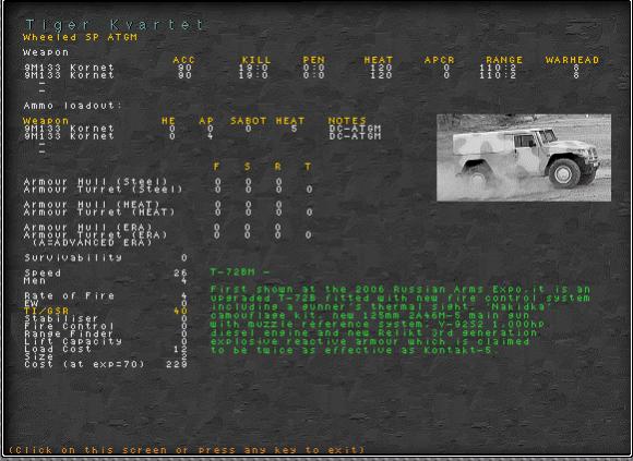 I found a Russian atgm jeep type vehicle with incorrect data. It has T72 tank information. See the attachment.