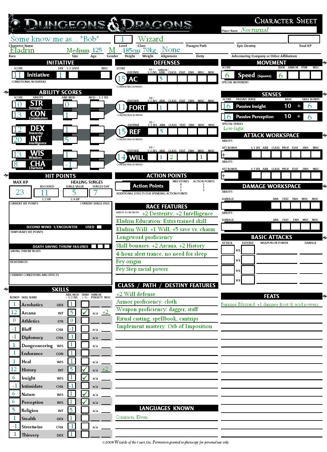 Oh, and I have every perception and knowledge-based skill except Dungeoneering (and streetwise if you count that.) Can't help it, wizards don't have that many options... and my head is hideously large.