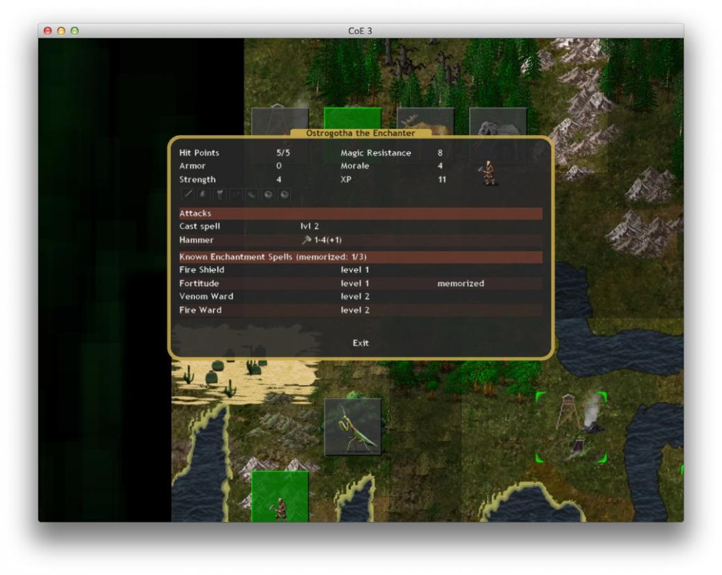 What he should have done was memorize Fortitude, Venom Ward and Fire Ward, because while spells that are cast in combat are randomly picked from among the memorized one, mages will not cast totally useless spells (e.g. Fire Ward against spearmen who have no fire attacks, and same goes for Venom Ward). Now, since the rememorization is random, he may find himself casting fireshield, which may or may not be a good thing depending on whether he casts it at a front row swordsman and whether the enemy will attack that swordsman or another.