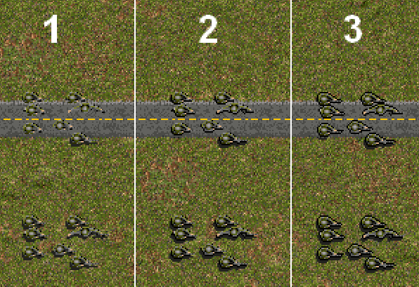 Notice how the "automatic" shadowing disappears when the infantry is on a road hex. The infantry in the no.1 example seem to become fused in the asphalt.