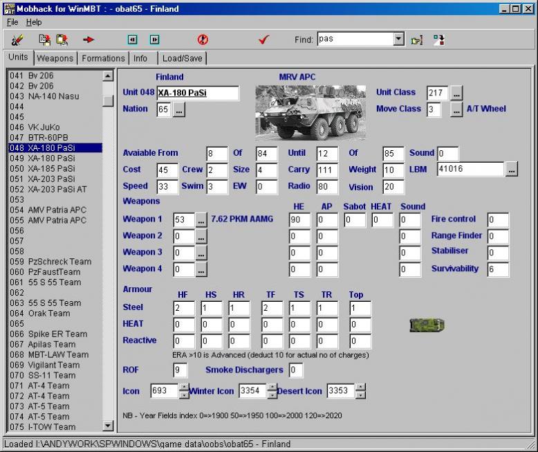 See units 48-52, and a few others (enter the search term "Pasi" in Mobhack's Unit page). Formations 115, 285, etc available 1984-2020, search for "MRV" or "RDF" in Mobhack on the formation page.